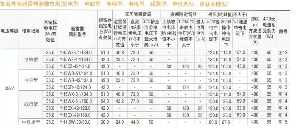 避雷器HY5WZ-51/134 HY5WZ-42/150 35KV
