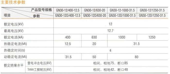 GN30-12D型开关是在GN30-12型开关基础上增加带接地刀的形式,可满足不同电力系统的需要。本产品设计紧凑、占用空间小、绝缘能力强。易于安装调整,其性能符合GB1985-89《交流高压隔离开关和接地开关》的要求,适用于额定电压12千伏交流50Hz及以下户内电力系统中,作为在有电压无负载情况下,分合电路之用。可与高压开关柜配套使用,也可单独使用。