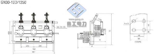 GN30-12型旋转式户内高压隔离开关是一种旋转触刀式的新型隔离开关,主要结构是在三相共底架的上、下两个平面上,固定两组绝缘子及触头,通过旋转触刀,从而实现开关的分合闸。