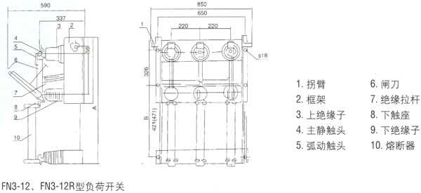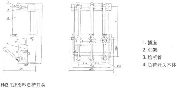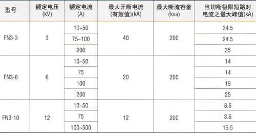 FN3-12、FN3-12R、FN3-12R/S负荷开关系户内装置的高压电器。适用于交流50Hz、6kV或12kV的网络中,作为开断和闭合负荷及过负荷电流之用,亦可用作开断和闭合空载长线。空载变压器及电容器之开关。带有RN3型熔断型的负荷开关(FN3-12、FN3-12R/S)可切断短路,作保护开关之用。
