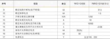 负荷开关-熔断器组合电器的技术参数见下表: